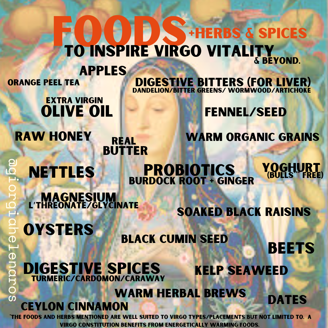 Chapter I Astro-nutrition series:A devotional guide to digesting Virgo Season~ especially helpful for those with natal Virgo Sun's, Moon's & Rising signs đ
