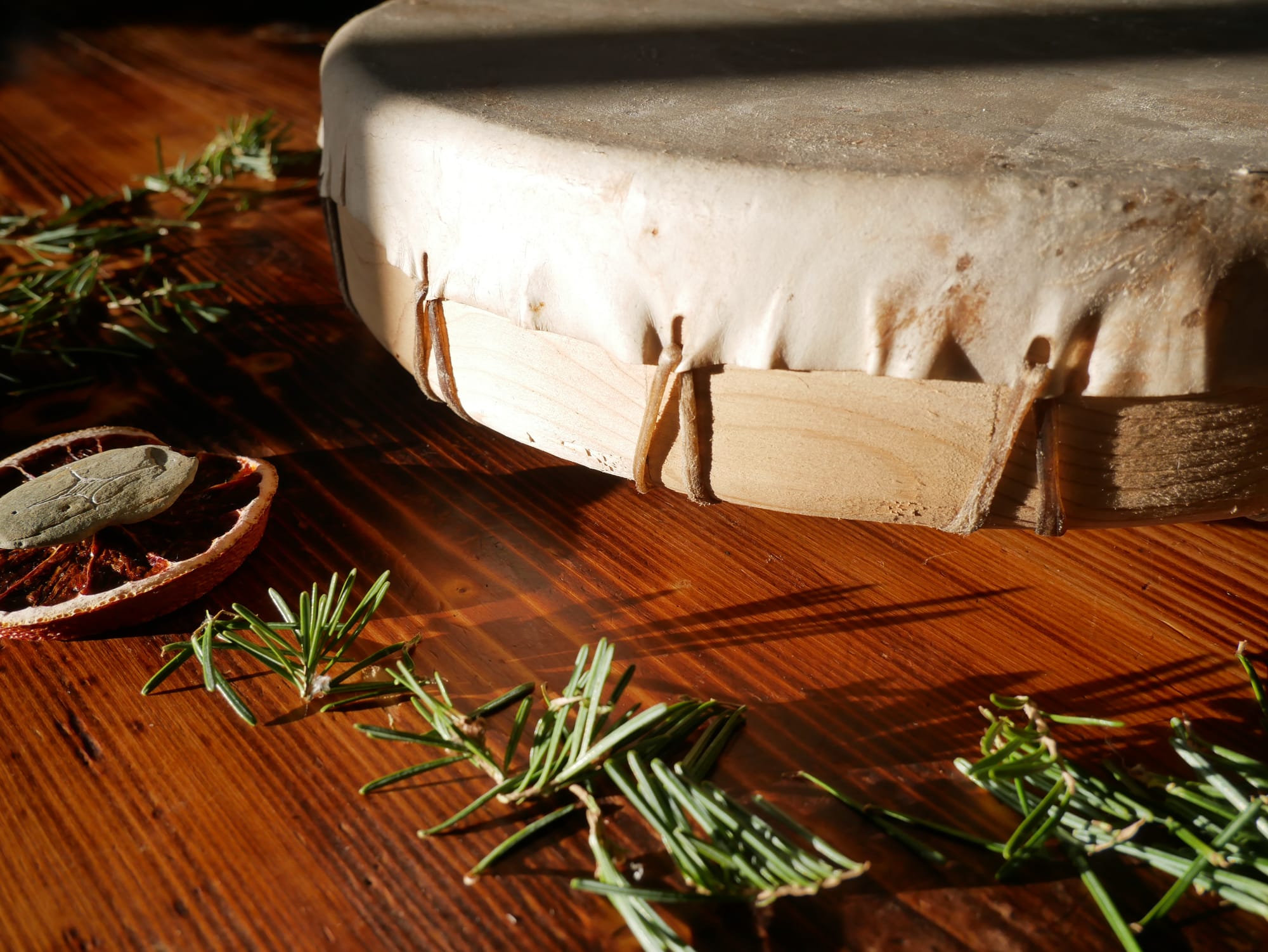 In the slow tuning, as the skin is warmed gently by the fire to tighten..